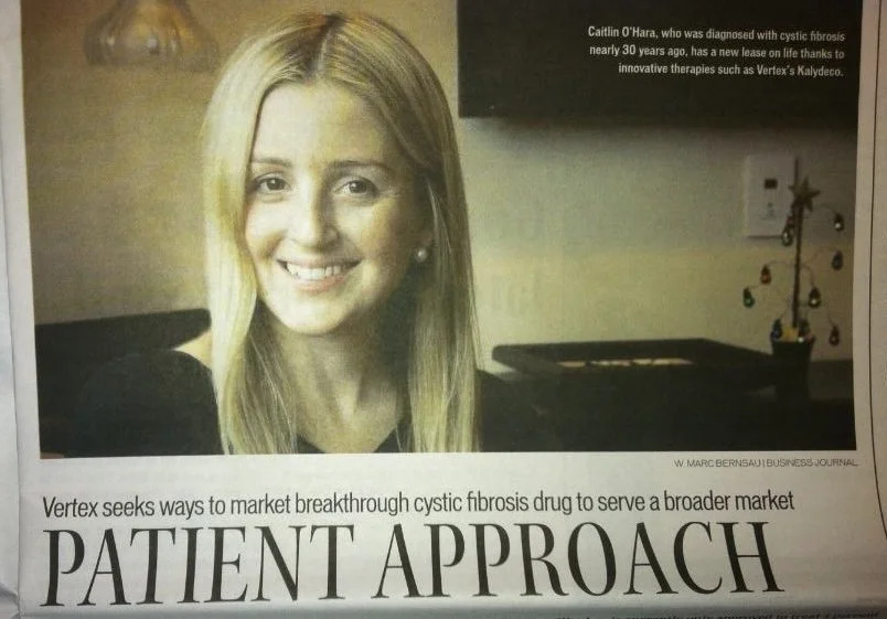Caitlin O’Hara, photographed during a press interview about breakthroughs in cystic fibrosis treatment. Dr. Uluer often asked Caitlin to share her perspective, believing that patients should be active voices in shaping care.
